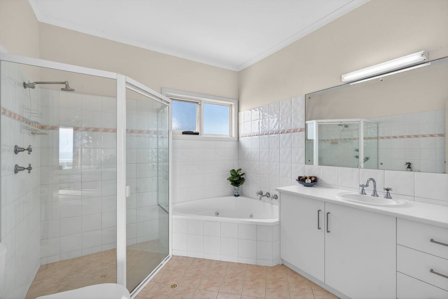 The upper level also hosts the generous master suite, complete with walk-in robe, ensuite and balcony access, waking to ocean views every day.