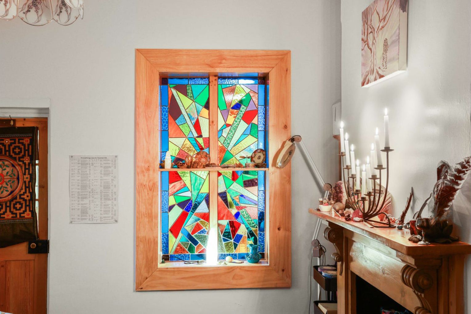 There are two more bedrooms currently used as office and massage/therapy room which has a decorative fireplace and the most stunning stain glass window with a pallet of rainbow colours.