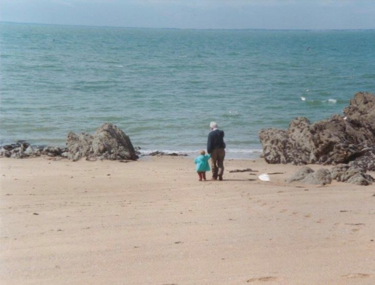 A photo of the first time we took our daughter, Jess, to the sea. This photo is pre-digital, so seems a bit simple now, but at the time it captured a moment. We were living in France in 1995 and we went to La Cote Sauvage du Croisic, a coastline near where we were living in Southern Brittany. I think it was only the third time my parents, who were living in the UK, had seen our daughter.