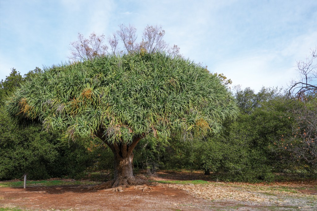 The Waite Arboretum in Urrbrae, established in 1928 has planted across its 30 hectares more than 2200 labelled, documented and mapped trees from around the world. While visitors to this fascinating green space are encouraged to enjoy all trees, there is one you must seek out. Elevated to inclusion as the Waite Arboretum’s logo, the mature Dragon Tree or Dragon’s Blood Tree (Dracaena draco), cuts a striking shape with its broad flat top and regularly arranged, swollen branches.