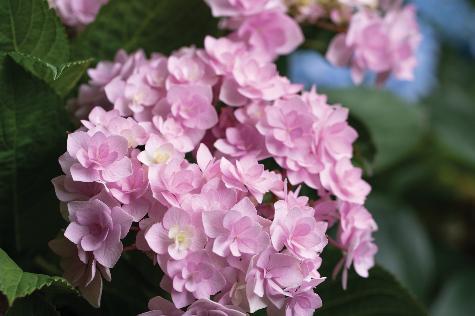 Desire is a new hydrangea and a breakthrough in modern breeding with outstanding double flowers that are large, rounded and prolific. Available in colours from pastel pink, lilac and blue to deeper, brighter shades. There is also the Magical Pearl, which has stunning clear white flowers. After a few weeks from the peak of flowering, that white ages to a chartreuse green that looks great in bouquets or as dried flowers. Flowers are formed on both old and new wood, so pruning shouldn’t be done unless necessary.