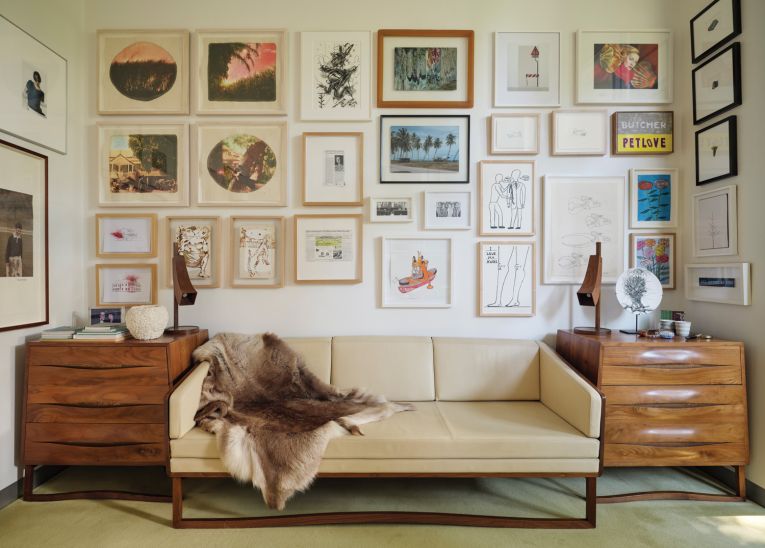A salon hang in the study includes works by David Shrigley, Tracey Moffatt, John Campbell, Jackson Slattery and Susan Hipgrave, has filled the space with colour and inspiration.