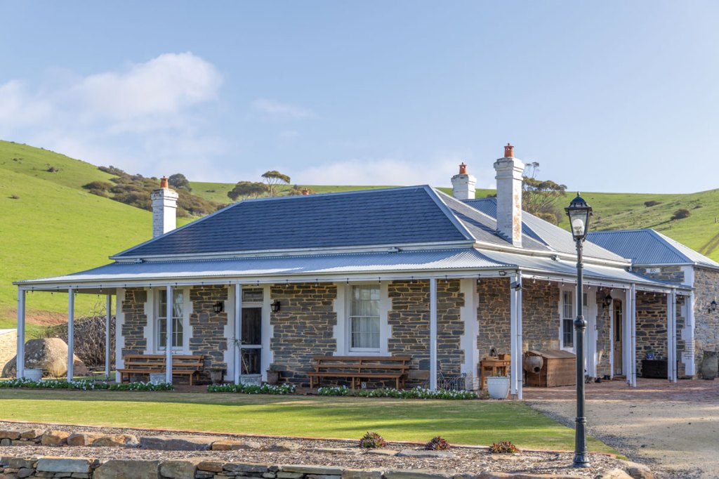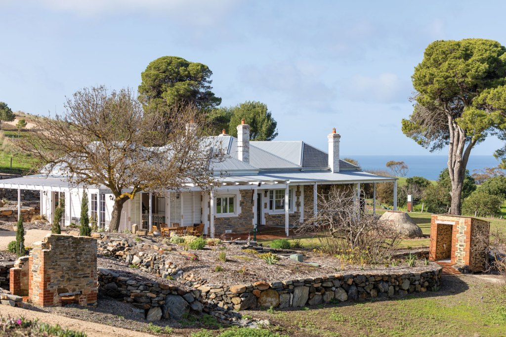 Four roof pitches display the evolution of the architecture over the years – the first section of the home was built in the 1850s, the second and third in the 20th century, and lastly is today’s extension. The property recently won an award for conservation at the Alexandrina Council Heritage Awards, as well as the Mayoral Award. The home’s original owner, Richard Gilbert, was an Irish convict, who was transported to Van Diemen’s Land for stealing a bag of flour.