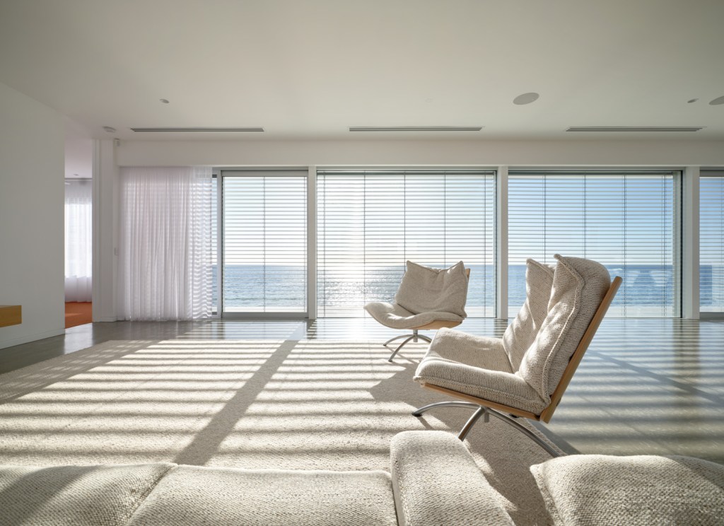 Automatic venetian blinds allow the pair to control the amount of light that enters the home – as well as how much can be seen by curious passers-by. “This house is a bit of an anomaly on the Esplanade, and because of that, people tend to spend time looking at it,” Gary says.