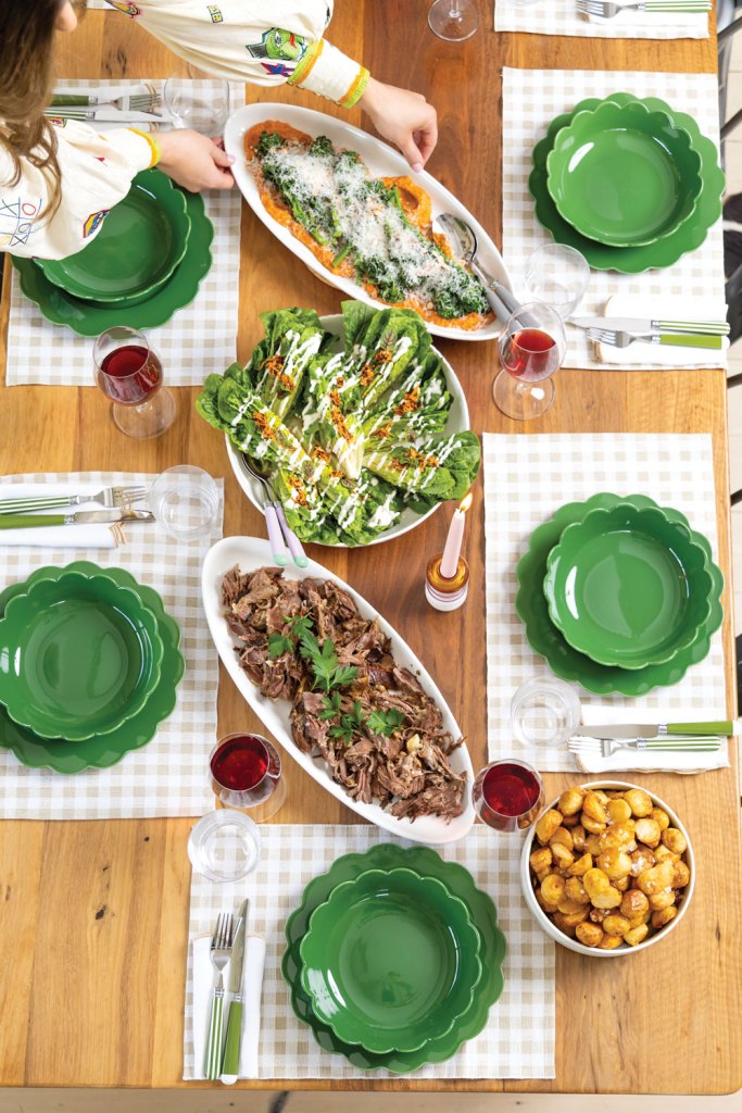 Today’s lunch has a decidedly country feel, complete with pastel gingham placemats beneath crockery from In the Roundhouse and flowers repurposed from Sinead’s birthday.