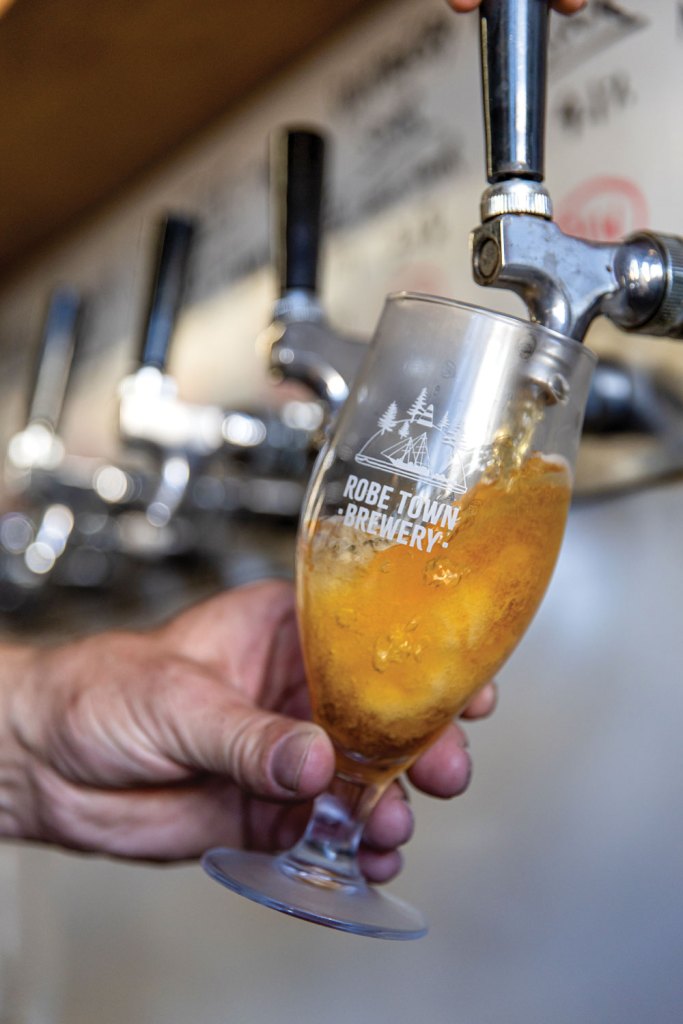 Back at the brewery and taphouse – located in a big shed a few blocks from the Robe main street – the full extent of Maris’s unique beer-making methods becomes clear. Unlike most breweries where you’d find flashy stainless-steel vats, refrigerated tanks, tubes and pipes, Robe Town Brewery has old wine barrels and a brick wood-fired stove.