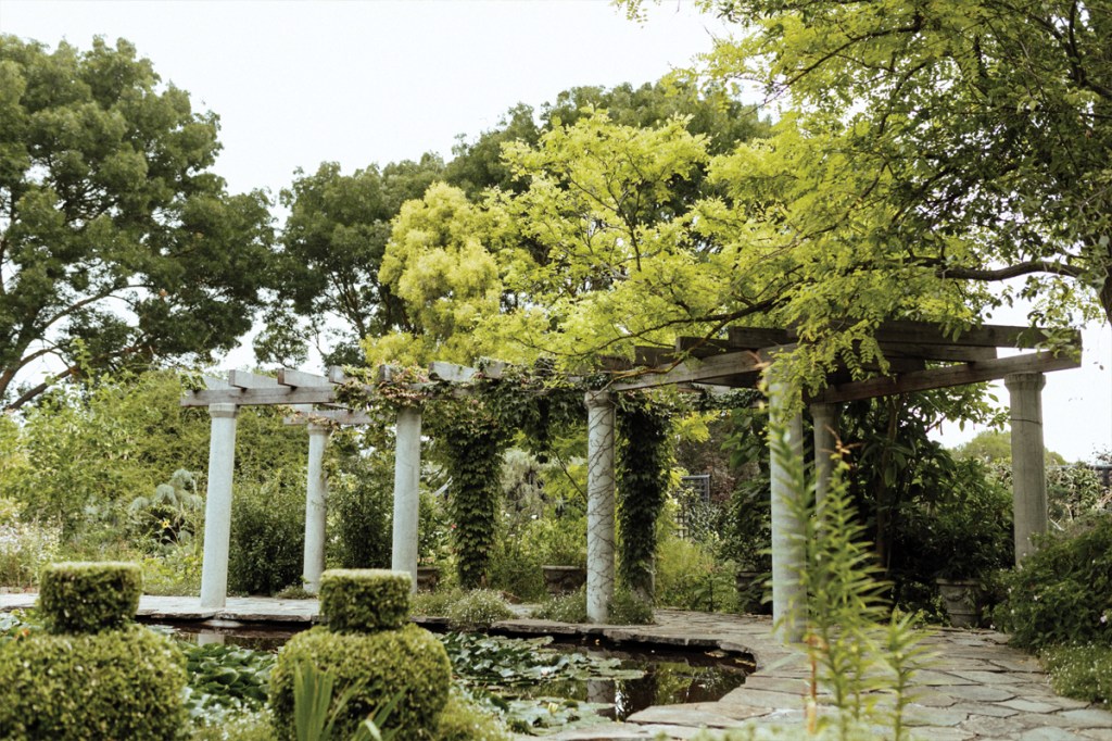 The garden has been Ruth’s life’s work. Over the years, sections have been curated with weddings in mind, creating myriad areas for ceremonies and photographs. There’s a wisteria arbour, lawns with perennial borders, and a lily pond. Garden paths wind through five whimsical hectares full of plants, with interest around every corner.