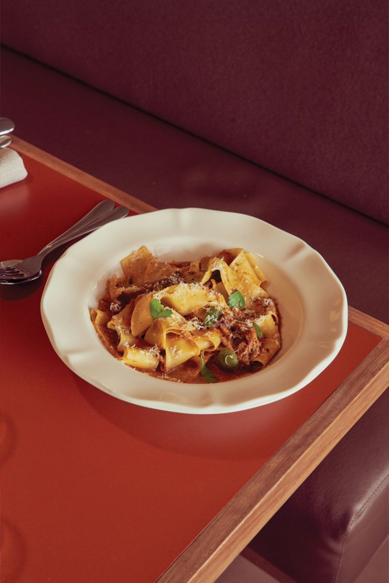 Similarly, the “pasta fritta” – a disc of fried dough – topped with nduja, honey and a delicate piping of mascarpone brings all the hot honey vibes with a refined touch (while the crisp white doily it’s served on is a welcome nod to “nonna chic”). Buttery scallops are well-loved and would benefit from a spritz of lemon, while hefty green olives stuffed with meat and fried (“all’ascolana”) brings a savouriness best washed down with a beer.