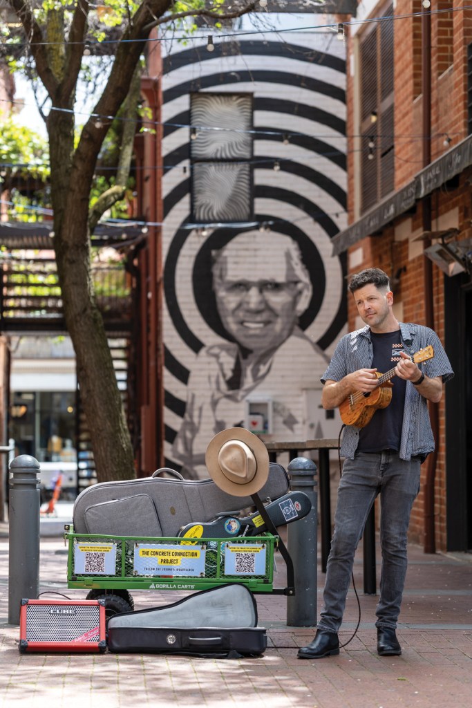 Ben set out with the goal to spend at least 20 minutes performing on every street, laneway and alley, interview other local musicians on his Concrete Connection Project podcast and write new music along the way.