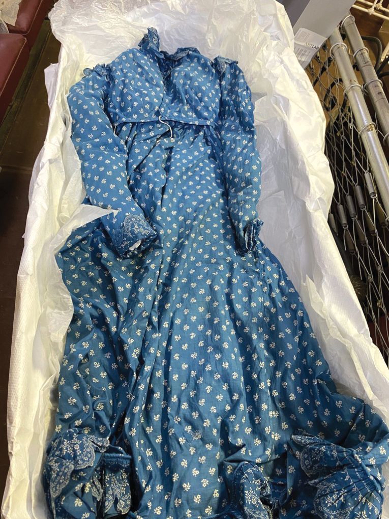 “I remember one of the boxes had just one dress and I opened it and there was this beautiful blue cotton dress with a floral print on it. And I thought, ‘Oh, this must be someone’s sewing project’. There’s no way this is a genuine, authentic dress, because it looked like it dated between 1810 and 1815 if it was real.