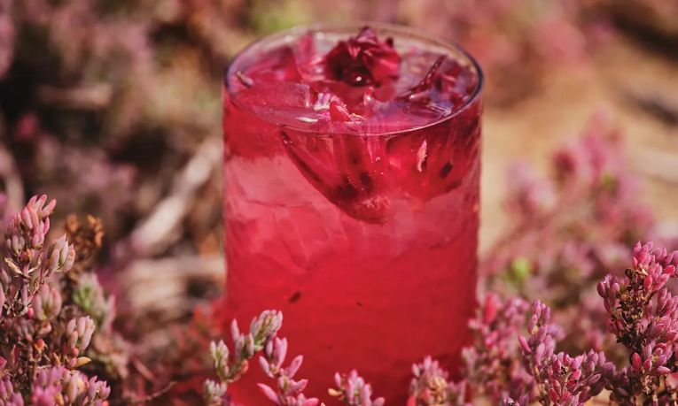 South Australian Chef Kane Pollard has enlisted the help of First Nations grower Marlon Motlop to help create this vibrant Green Ant Gin with native rosella pink lemonade.