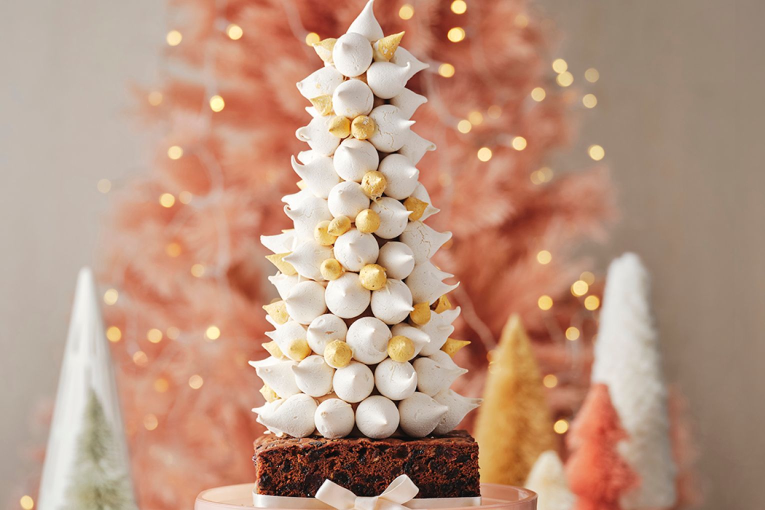 Sugar and spice and all things nice – this meringue tower takes your Christmas fruit cake to the next level, creating a stunning visual centrepiece for your festive table.