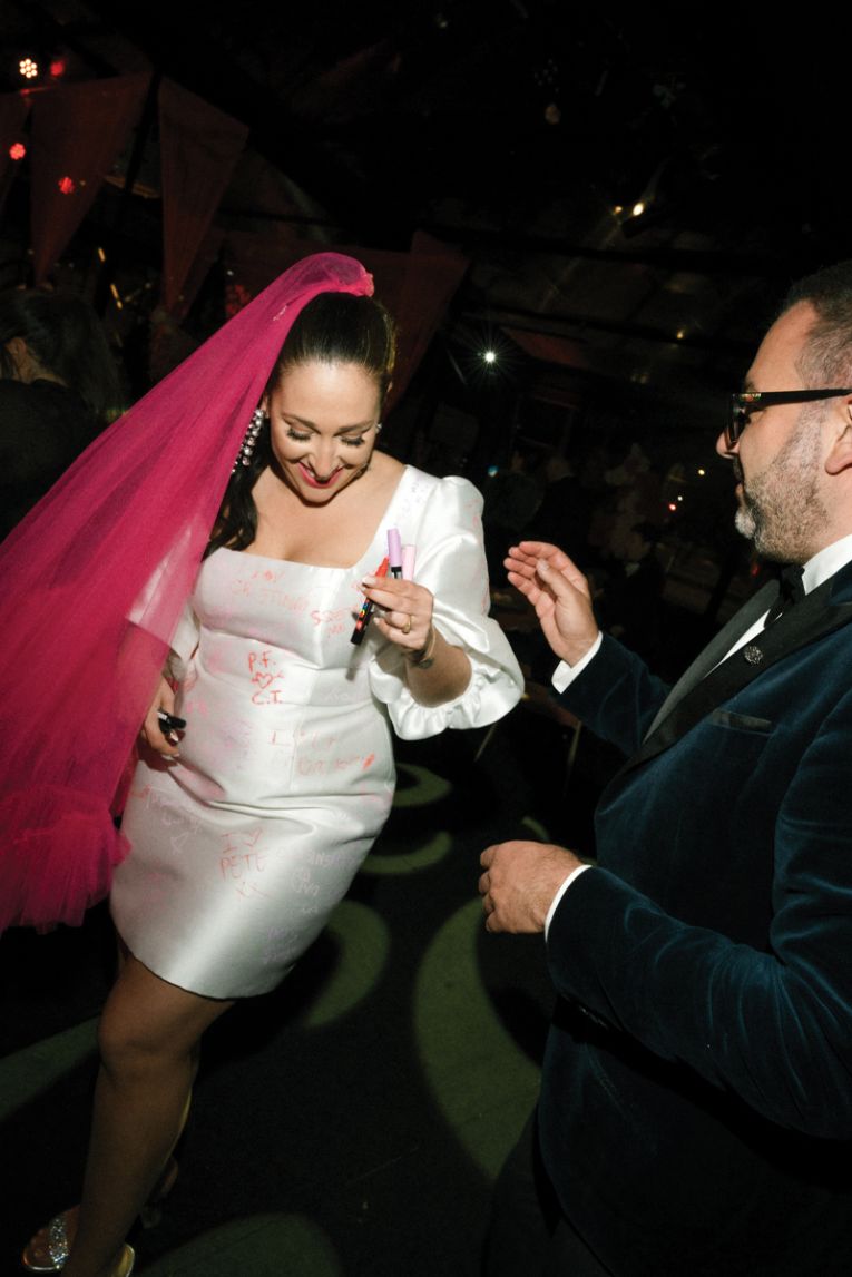 Fashion designer Cristina Tridente created all four of her wedding dresses as she said yes to husband, Petar Filipovic on their fun, dreamy big day.