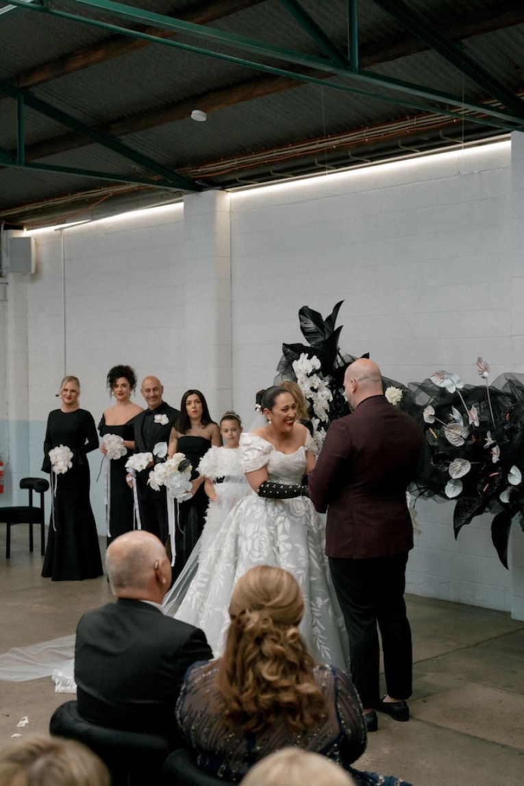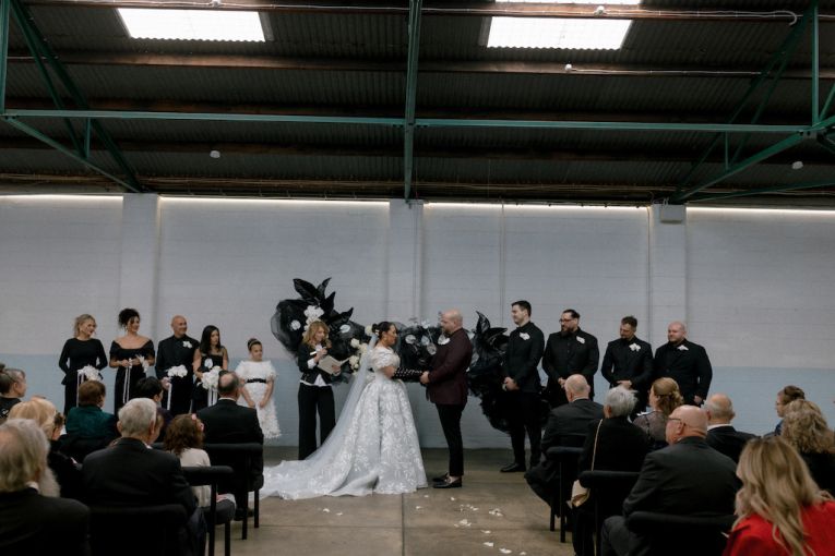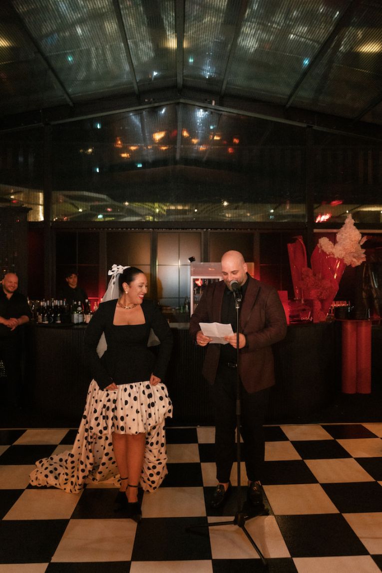 Cristina and Petar were engaged at Disneyland, Japan in 2023, after meeting through mutual friends a couple of years prior. Cristina, founder and designer at fashion label couture+love+madness, wore four gowns, all created by her and her team in-house. Her final dress was inspired by the nostalgia of signing year 12 school tops, and guests were invited to leave a message on her dress. Their ring bearer was their golden retriever, Hercules. “It was the best day of my life,” Cristina says. “It was the day I got to marry my best friend. It absolutely poured with rain, but we had such a beautiful day surrounded by all our family and friends.”
