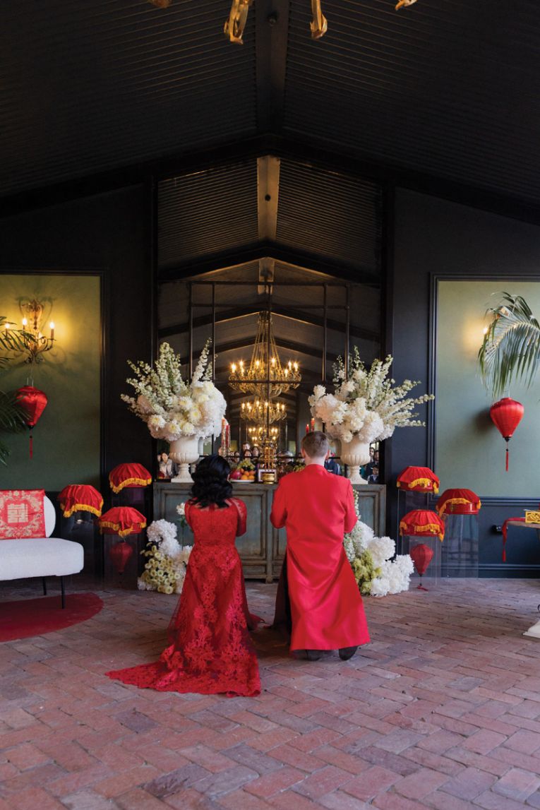 Thomas and Julie celebrated their nuptials with a traditional Vietnamese tea ceremony, which rolled into lunch ahead of a garden ceremony at Mandalay House and Garden.